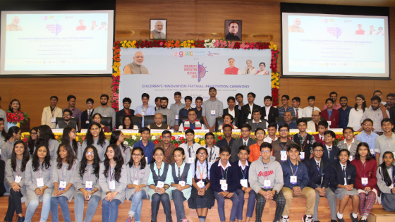 Hon’ble Chief Minister of Gujarat felicitates top 30 teams of Children Innovation Festival organized jointly by GUSEC and UNICEF.